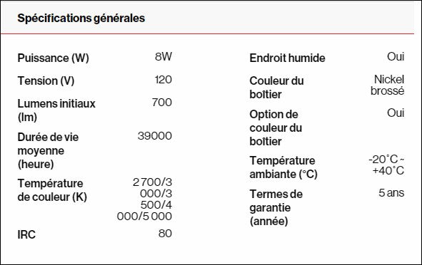 - Ampoule(s) incluse(s) : Oui